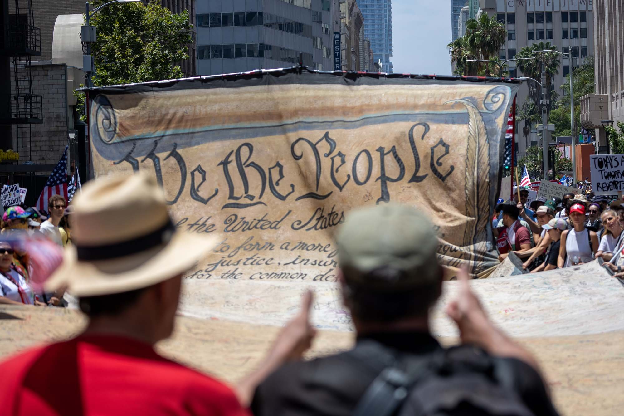 A black-and-white portrait of a man with shoulder-length dark hair, smiling, wearing a suit and tie.