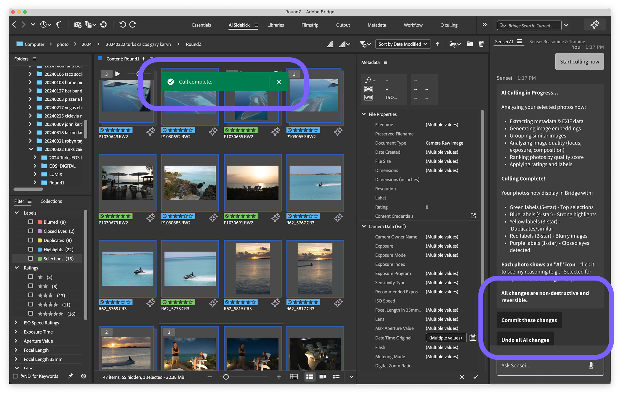 Adobe Bridge is powerful but can overwhelm new users with its many clicks and keystrokes. Culling photos can be complex and time-consuming, making it a perfect task for AI.